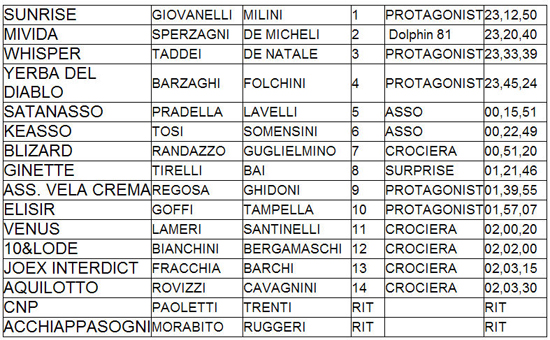 “Sunrise”, scafo della serie Protagonist degli skipper madernesi Matteo Giovanelli e Alberto Milini (dopo quasi 7 ore di navigazione in notturna) ha vinto la classica regata della “18a Trans Lac end Du”, gara che apre, di fatto, gli eventi agonistici del 2008 sul lago di Garda. Secondo ha chiuso “Mi Vida” di Sperzagni-De Micheli di Portese, terzi Taddei-De Natale di Salò su “Whisper”.