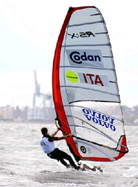 Prima posizione per il cipriota Michalis Malekkides (1-1-1-(4)-2-4) nell’RS:X Maschine (26 equipaggi), secondo il greco Thiseas Kampas (2-3-5-2-(11)-3), terzo il tedesco Oliver-Tom Schliemann (7-2-2-7-1-(9)). Manfredi Misuraca (CC Roggero di Lauria) scende di qualche posizione ed è 11° (12-10-13-6-6-(15)).
