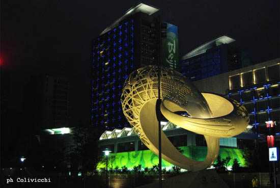 Conto alla rovescia per le Olimpiadi della vela. Domani (giovedi 7 agosto) i Comitati di regata hanno annunciato che poseranno in mare i campi di gara come previsti dalla giornata inaugurale e dalle Istruzioni. Forse si potrà svolgere una piccola regata di prova, almeno per alcune classi. Gli azzurri della vela sono al gran completo, con l’arrivo questa sera dell’equipaggio della classe Star composto da Diego Negri e Luigi Viale: la coppia delle Fiamme Gialle ha fatto scalo a Pechino ed è giunta a Qingdao in serata. Grande impressione ha destato anche nei due staristi il villaggio olimpico, che ha una hall principesca e vastissima, grandi spazi e servizi per gli atleti. Nella foto una vista notturna dell’esterno del villaggio dalla parte dell’entrata degli atleti.
