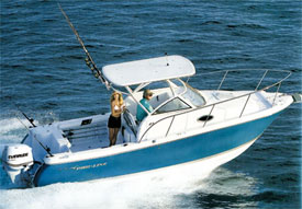 Dotato di una console di guida walk-around protetta da un hard-top rigido e munita di antistante poltroncina passeggeri, questo fisherman di sette metri di lunghezza, dispone di un pozzetto dedicato espressamente al big-game attrezzato con numerosi porta canne a murata e sullo stesso hard-top.