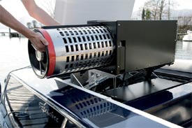 -Clean Power Station. In questa stazione di servizio si produce (sino a 823 kg l’anno per circa 1.100 bombole pari circa a 27.200 kW!!!) e si distribuisce l’idrogeno. Per rifornire la barca si sostituisce semplicemente la bombola o si ricarica! Tempo per l’operazione: 5 minuti (contro le usuali 8 ore per la ricarica di una batteria elettrica tradizionale).