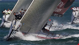 Dopo tanti giorni di termica, nel Golfo degli Angeli entra finalmente il tanto atteso maestrale, che soffiando ad oltre 20 nodi regala a tutto il Circuito Audi MedCup una giornata intensissima e ricca di colpi di scena. A spuntarla nella TP52 Series, con tre ottime prove, sono i neozelandesi di Emirates Team New Zealand (NZL), che gestiscono bene il vantaggio iniziale, chiudendo la giornata con 14,5 punti di vantaggio sul secondo in classifica, Matador (ARG). Proprio gli argentini, dopo la vittoria nella prima regata, erano i più accreditati a contendere il titolo ai Kiwi. Speranze sfumate nelle due prove successive, fra errori, penalità e rotture.