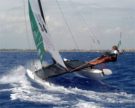 In Germania soffia forte il vento dei multiscafi, non solo perché l’ultima Coppa America è stata disputata su questo tipo di imbarcazioni, ma perché nel Nord Europa è una realtà molto consolidata. Murphy&Nye si è legata a due team di campioni tedeschi, specialisti dell’Hobie Cat: Hauke Bockelmann/Jil Mohr e LauritzBockelmann/Johanne Bredekamp (entrambi i timonieri sono stati campioni europei juniores).