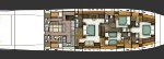 Nel lower deck la cabina armatoriale è posizionata al centro barca, mentre una cabina vip a prua e due cabine laterali possono accogliere fino a 6 ospiti.