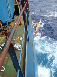 Il Catamarano, per il vento non più sopportabile da tutta quella tela e per l’onda ripida al traverso che non consentiva di sfuggire alle raffiche andando con la prua al vento, scuffiava. Durante il primo tentativo di raddrizzamento notavamo il disalberamento. A quel punto abbiamo iniziato un ininterrotto lavoro di messa in sicurezza dell’imbarcazione e ripetuti tentativi di raddrizzamento del catamarano per circa dodici ore. Lo Staff Sicurezza a terra veniva periodicamente informato della situazione e monitorava posizione e comunicazioni. Quando ci siamo resi conto che era impossibile rendere autonoma la navigazione dell’imbarcazione, alle ore 11:30 GMT del 17/01/2011, abbiamo dato il May Day”.