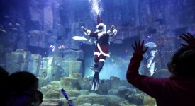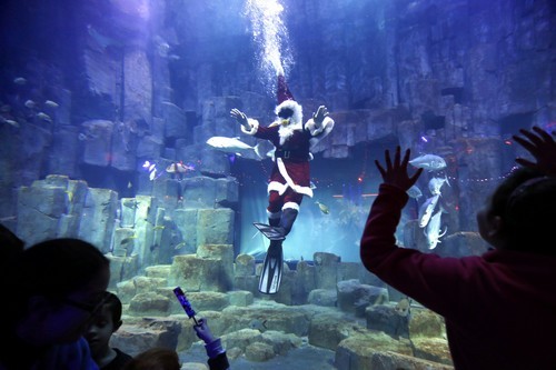 A man dressed as Santa Claus dives among the fish at the Paris Aquarium in Paris on December 22, 2012. AFP PHOTO / FRANCOIS GUILLOT (Photo credit should read FRANCOIS GUILLOT/AFP/Getty Images)