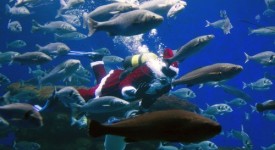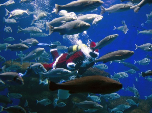 A diver wearing a Santa Claus costume feeds fish at the aquarium of Palma de Mallorca on December 21, 2012, three days before Christmas. AFP PHOTO / Jaime REINA (Photo credit should read JAIME REINA/AFP/Getty Images)