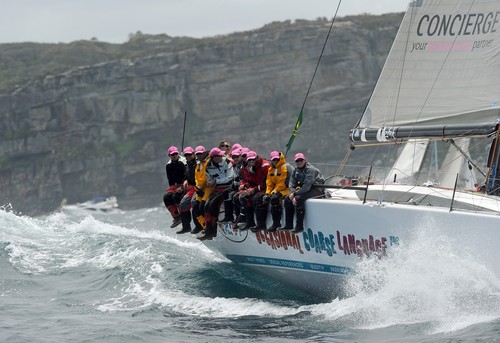 In this photo taken on December 26, 2012 yacht Occasional Coarse Language Too, sails out of Sydney Harbour shortly after the start of the Sydney to Hobart yacht race. Wild Oats XI leads the fleet in the annual 628-nautical mile bluewater classic, as the leaders prepared to enter the treacherous Bass Strait towards Tasmania on December 27. IMAGE STRICTLY RESTRICTED TO EDITORIAL USE – STRICTLY NO COMMERCIAL USE AFP PHOTO / Greg WOOD (Photo credit should read GREG WOOD/AFP/Getty Images)