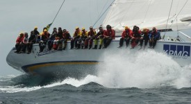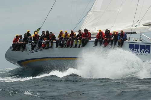 Crew members on board Brindabella sail their yacht out of Sydney Harbour into open water during the start of the gruelling Sydney to Hobart yacht race on December 26, 2012. Wild Oats XI is a hot tip to take a sixth line honours win in the 628-nautical mile course down south-eastern Australia. IMAGE STRICTLY RESTRICTED TO EDITORIAL USE – STRICTLY NO COMMERCIAL USE AFP PHOTO / Greg WOOD (Photo credit should read GREG WOOD/AFP/Getty Images)