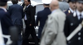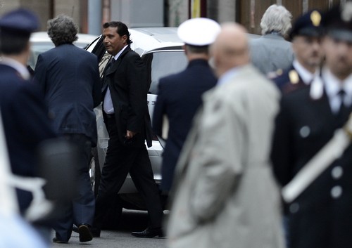 The captain of the Costa Concordia Francesco Schettino (C) leaves after hearings at a Grosseto court to work out the details of the tragic night of the Costa Concordia disaster on October 15, 2012. The giant luxury cruise ship — more than twice as big as the Titanic — had 4,229 people on board when it struck an offshore reef near the Italian island of Giglio on the evening of January 13, tearing a massive gash in its hull. AFP PHOTO / FILIPPO MONTEFORTE (Photo credit should read FILIPPO MONTEFORTE/AFP/GettyImages)