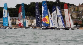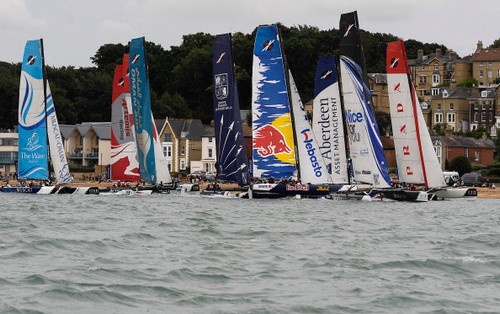 COWES, ENGLAND – AUGUST 06: The Extreme Sailing Series race during day one of the Aberdeen Asset Management Cowes Week on August 06, 2011 in Cowes, England. (Photo by Alan Crowhurst/Getty Images)