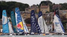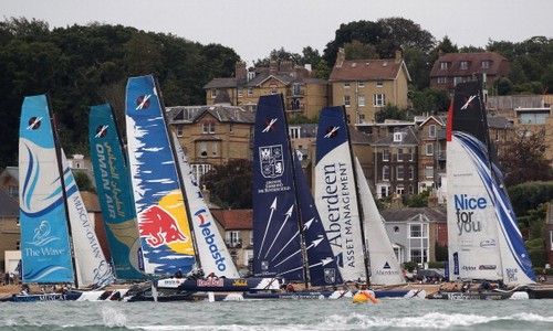 COWES, ENGLAND – AUGUST 06: Boats compete in the Extreme Sailing Series during day one of the Aberdeen Asset Management Cowes Week on August 6, 2011 in Cowes, England. (Photo by Tom Shaw/Getty Images)