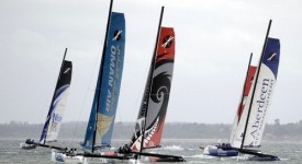 COWES, ENGLAND – AUGUST 11: Racing in the Extreme Racing Series during day six of the Aberdeen Asset Management Cowes Week on August 11, 2011 in Cowes, England. (Photo by Alan Crowhurst/Getty Images)