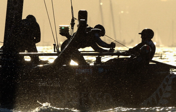 SAN FRANCISCO, CA – OCTOBER 06: Emirates Team New Zealand skippered by Dean Barker competes in a fleet race during the America’s Cup World Series on October 6, 2012 in San Francisco, California. Teams are racing on an AC45 boat, which is the forerunner to the AC72 that teams will race next year in the Louis Vuitton Cup and America’s Cup Finals in San Francisco. (Photo by Ezra Shaw/Getty Images)