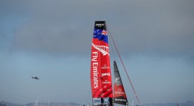 SAN FRANCISCO, CA – OCTOBER 07: Emirates Team New Zealand skippered by Dean Barker competes in the final fleet race during the America’s Cup World Series on October 7, 2012 in San Francisco, California. Teams are racing on an AC45 boat, which is the forerunner to the AC72 that teams will race next year in the Louis Vuitton Cup and America’s Cup Finals in San Francisco. (Photo by Ezra Shaw/Getty Images for Omega)