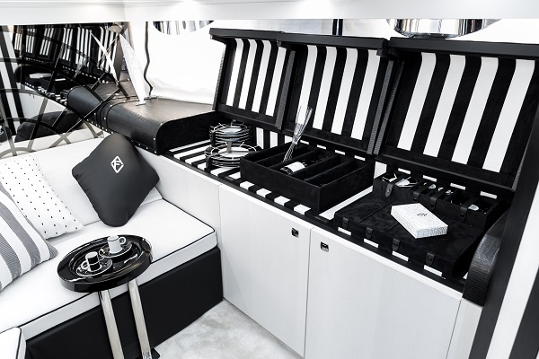 E’ così che è nato il 370 GT Special Edition: un’imbarcazione straordinaria dai fantastici interni firmati Fendi, insoliti forse per il contesto, ma perfetti nel complesso.
