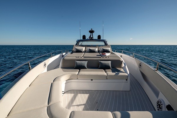 Una delle scelte che sono risultante più evidenti e appaganti è legata alla postazione di pilotaggio: questa è stata arricchita con una finestra laterale che unisce l’ambiente con l’esterno dando modo a chi guida il modello di creare davvero una connessione tutta particolare con il mare, soprattutto a velocità elevate. Altrettanto interessante è il flusso della finestratura, che come sottolineano da Azimut Yachts, è in grado d’influenzare “gli andamenti nel deck in un gioco di contrasti e luci in circolo” con le scie di acqua che si vengono a creare quando ci si muove velocemente.