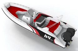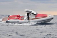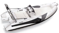 La base su cui si è lavorato è quella di una carena di ottima performance. Anche qui, come su tutti gommoni della gamma, è altissima la qualita costruttiva: il tessuto gommato è Hypalon Neoprene Trevira da 1.000 a 1.500 denari per cmq, il taglio è al laser con macchine a controllo numerico.