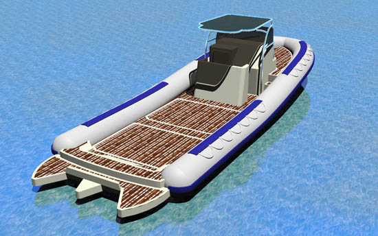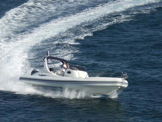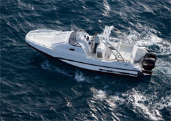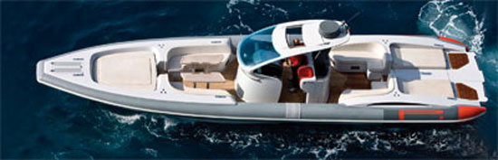 Tutto quello che potete chiedere ad un gommone lo trovate sul Pirelli Pzero 1000. La motorizzazione è entrofuoribordo con due motori, per una potenza massima di oltre 600 cv: mezzo potente e veloce al servizio della crociera. Spicca il bel disegno del piano di poppa, con il camminamento centrale tra i due prendisole, soluzione che trova il suo prolungamento naturale nel passaggio tra i sedili centrali della zona pilotaggio. Risultato: si riesce, senza soluzione di continuità, a percorrere la barca da poppa a prua, fino a raggiungere il secondo prendisole.