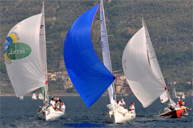 Era primavera sul Garda (vento 6-7 nodi da sud) dove si è disputata la 52° edizione del Trofeo dell’Odio, ultima tappa del circuito stagionale del Circolo Vela Gargnano, supportato come buona parte degli eventi da Aria (www.in-aria.it). E’ stato L’Asso 99 “Assterisco” del nobile bresciano Giorgio Zamboni (Campione nazionale in questo 2008), condotto per l’occasione dal salodiano Davide Boventi, a tagliare per primo il traguardo dopo le oltre 12 miglia di navigazione che hanno portato la flotta a doppiare l’isola del Trimelone, lungo la costa veneta del lago. Secondo di classe ha chiuso “Sarchiapone One ” del milanese Marco Ghezzi (Yc Como), terza la famiglia Cavallini (CV Gargnano).