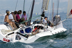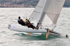 Per fortuna che nelle retrovie del Campionato Mondiale Tornado ogni tanto qualcosa succede. Perché davanti, invece, è sempre la solita storia. Darren Bundock e Glenn Ashby, la coppia australiana plurititolata, sembra avere navigato sul Garda da sempre. Ieri, un altro primo posto, e fanno cinque consecutivi dall’inizio del mondiale che si sta disputando nello spazio di lago tra Toscolano Maderno e Gargnano, sotto la regia dei due Circoli Velici. I cat, che non sono stati ammessi alle prossime Olimpiadi pur scrivendo una pagina importante nella storia della vela a cinque cerchi, sono scesi in acqua questa mattina presto per testare e tastare il Peler, il vento da nord che soffia vigoroso dalle otto. Solitamente, perché invece oggi si è fatto attendere invano.
