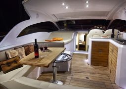 Grazie all’allungamento della sezione poppiera si è ottenuto un cockpit più ampio di 35 cm. Questo ha permesso di creare anche uno spazio esterno più esteso ed accogliente. Il cockpit del C48 si presenterà più luminoso grazie all’apertura dell’hard top – ancora più grande e gestita elettricamente – posizionata a tribordo del posto di guida che permette all’aria una circolazione perfetta. Infine, il posto di guida, e’ stato ridisegnato su ispirazioni più “automotive”, molto care allo storico designer del cantiere Christian Grande. Il risultato? Uno yacht moderno in grado di esprimere un’eleganza sportiva unica.