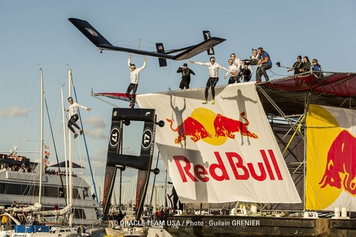 Oracle sogna di volare. Che si tratti della Wingsail dell’AC72 appena inaugurato o di un’improvvisata macchina volante, gli uomini di Jimmy Spithill non si sono tirati indietro alla giornata di volo del Red Bull Flugtag a San Francisco. E un po’ del “DNA” dell’ala rigida distrutta durante uno dei primi test è nell’anima di questa aerodina “assemblato utilizzando le stesse tecniche dei catamarani più grandi”. I pezzi del relitto recuperati a Golden Gate Bridge sono serviti a costruire Spitit of 17, lanciata da una piattaforma di 30 metri per un volo planare di alcune decine di metri.