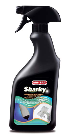 SHARKY è il prodotto polivalente pensato da MA-FRA per risolvere due difficili problemi, tipici della pulizia delle imbarcazioni: cancellare dai parabordi lo sporco resistente e smacchiare a fondo i tessuti plastificati eliminando l’ingiallimento. SHARKY, grazie all’azione combinata dei tensioattivi naturali, elimina senza fatica dalla superficie dei parabordi le tracce di vernice, di catrame e di morchia dovuta ai gas di scarico. La sua azione delicata non snerva i parabordi perché mantiene inalterata l’elasticità del PVC. Sugli elementi d’arredo della barca, SHARKY garantisce risultati eccezionali pulendo dove i normali detergenti non riescono ad agire. SHARKY aiuta ad eliminare lo sporco dai tessuti quando questo è inglobato nel tessuto stesso: gli sbalzi di temperatura, infatti, aprono e chiudono le fibre (dei tessuti), permettendo allo sporco di penetrare e impedendone una corretta pulizia.