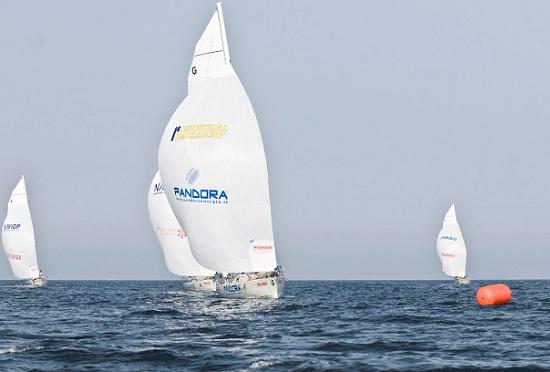 Dopo una lunga attesa che si è protratta per circa due ore è entrato un vento leggero che ha permesso al giudice di predisporre il campo dei regata regolare. Già alla partenza Riva del Garda Pregis ha preso vantaggio nei confronti del suo diretto avversario Castelsanpietro Terme Gammadue e alla prima boa di bolina aveva già ben cinque lunghezze di distanza. Nel gruppo sono usciti prepotentemente Cagliari Zavoli e Emilia Romagna Pandora che hanno seguito i primi due pur con un grosso distacco. Baia di Sistiana è rimasta indietro a causa di un bordo sbagliato e non è più riuscita a riagganciare il primo gruppo.