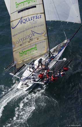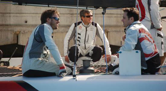 Gli Extreme 40 sono usciti in mare per la messa a punto preliminare in attesa dell’inizio dell’allenamento vero e proprio dell’equipaggio, che comincerà domani. A bordo di quello bianco c’erano i progettisti Jean Claude Monnin e Pierre Yves Jorand, insieme ai velisti Murray Jones, Nils Frei e Juan Vila. Sulla barca nera invece altri progettisti: Dirk Kramers, Daniele Constantini e Luc Dubois, insieme ai velisti Yves Detrey e Piet van Nieuwenhuyzen.