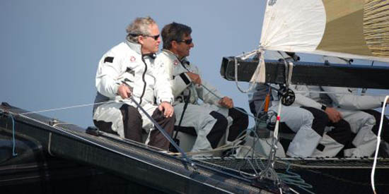 Yves Detrey, drizzista su Alinghi, parla sul sito del consorzio svizzero della sua esperienza sui multiscafi, descrive le regate sui D35 sul lago di Ginevra e affronta l’argomento della diversa abilità necessaria per regatare su di un catamarano rispetto a un’imbarcazione a chiglia.