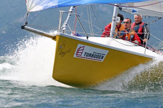 E’ il gardesano Roberto Bini il campione europeo Ufo 22 2008. Si è concluso nelle acque di Domaso, sul lago di Como, un campionato davvero spettacolare, con 22 imbarcazioni iscritte, grande equilibrio nella flotta e suspance fino all’ultimo istante. Bini su Turboden (Circolo Vela Toscolano Maderno, nella foto), con i bresciani Paolo Bertuzzi tailer e tattico e Carlo Scoccimarro, viene premiato dalla regolarità nei piazzamenti riuscendo a scartare gli unici due risultati poco favorevoli (1-7-4-1-4-2-2-4-9).