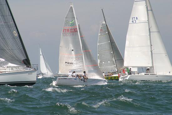 Dopo una lunga attesa che si è protratta per circa due ore è entrato un vento leggero che ha permesso al giudice di predisporre il campo dei regata regolare. Già alla partenza Riva del Garda Pregis ha preso vantaggio nei confronti del suo diretto avversario Castelsanpietro Terme Gammadue e alla prima boa di bolina aveva già ben cinque lunghezze di distanza. Nel gruppo sono usciti prepotentemente Cagliari Zavoli e Emilia Romagna Pandora che hanno seguito i primi due pur con un grosso distacco. Baia di Sistiana è rimasta indietro a causa di un bordo sbagliato e non è più riuscita a riagganciare il primo gruppo.