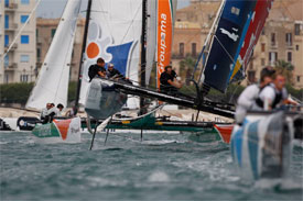 25 settembre 2010. Loick Peyron, Mike Golding e Frank Cammas, leggende della vela mondiale, sono soltanto alcuni tra i campioni presenti a Trapani per la tappa italiana delle Extreme Sailing Series™ in corso di svolgimento all’interno del porto antico della città. Ma c’e’ qualcuno, giovanissimo e irriverente, che sta riuscendo almeno fino ad oggi, a scombinare i piani di campioni così blasonati: si chiama Paul Campbell-James, ha 28 anni, inglese con un curriculum ancora da scrivere, ma e’ in testa alla classifica provvisoria con ben 16 punti di vantaggio su Loick Peyron (Oman Sail Masirah) e 22 sul terzo in classifica Yann Guichard (Groupe Edmond De Rothschild).