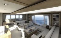 Ferretti Custom Line all’inizio della stagione varerà la nuova ammiraglia della linea planante: 124’ (circa 37 metri), caratterizzata da ampi spazi a bordo (50 mq il salone) e linee rinnovate da un nuovo approccio progettuale che prevede l’inserimento di piattaforme abbattibili con apertura elettroidraulica per creare terrazze sospese sul mare.