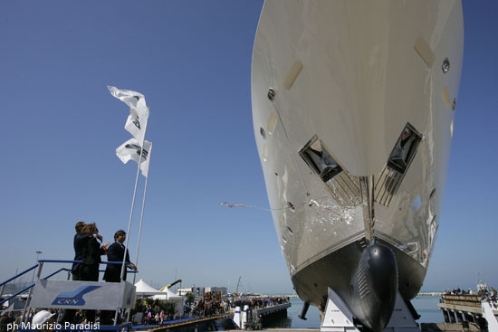 Con una cerimonia privatissima per l’armatore ed i suoi ospiti, il cantiere CRN di Ancona ha varato questa mattina “Hana”, splendido maxiyacht dislocante di 43 metri, secondo scafo della fortunata linea in composito CRN 43, di cui sono già stati venduti i primi 6 esemplari. Un evento che il cantiere ha voluto riservare al cliente, di nazionalità mediorientale, arrivato per l’occasione con la famiglia e gli amici più intimi. Dopo il saluto del Presidente di CRN Lamberto Tacoli e la tradizionale rottura della bottiglia, “Hana” è stata varata con la suggestiva cerimonia a scivolo. Un momento di forte emozione sottolineato dalle note della celebre aria “Con te partirò” e accompagnato dal caloroso applauso del pubblico.
