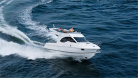 “abitativa”, per ottenere più spazio disponibile senza rinunciare alle forme aggressive né alla vocazione sportiva. Un sapiente gioco d’incastri dei volumi esterni ed interni rende la barca pienamente sfruttabile in tutte le sue funzioni. Motorizzazione con trasmissioni IPS che regalano manovrabilità, sicurezza e spazio aggiuntivo a bordo. Di notevole impatto anche la scelta delle colorazioni, che amplificano ulteriormente la snellezza e la somiglianza di questa nuova creatura marina alla C68, la nuova ammiraglia Sessa Marine appena varata.