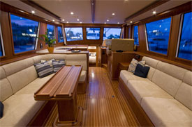 Numerose le caratteristiche di interesse del nuovo scafo Grand Banks Yachts. Innanzitutto, appare evidente come il GB 76 sia una versione estesa e allungata (e più accessoriata) del modello GB72, che aveva preceduto il GB 76 nell’evoluzione delle versioni di questa imbarcazione. Entrambi i modelli sono stati progettati da Tom Fexas, che nella storia di Grand Banks ha avuto recentemente un ruolo piuttosto rilevante.