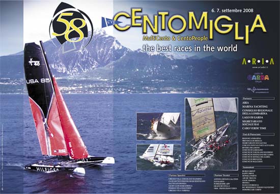 Mentre sul Garda si lavora per gli eventi della Centomiglia velica (dal 31 luglio il 42° Trofeo Gorla, la prima settimana di settembre il Tricolore Asso 99 e il 6-7 settembre le 3 regate della 58° Centomiglia con MultiCento e CentoPeople) il Circolo Vela Gargnano sta mettendo a punto la “20° Cento Cup” che si correrà dal 16 al 21 settembre nelle acque siciliane al largo di Trapani. Sarà l’unico Match-Race di Grado 1 in Italia. La regata internazionale nasce grazie alla collaborazione con il Trapani Yacht Club, la Provincia di Trapani e la società Velaevento.