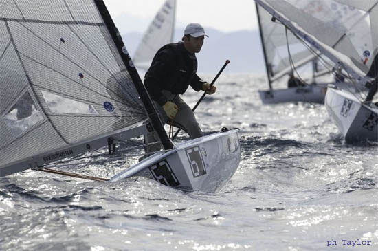 Libeccio sugli 8-11 nodi alla Marina di Scarlino. Grande attesa per la medal race di domani, con il fuoriclasse inglese Ben Ainslie che dovrà recuperare 8 punti al francese Guillaume Florent (nella foto) all’Europeo Finn che si conclude domani alla Marina di Scarlino. Nell’ottava prova, disputata oggi con un vento da 230° poi ruotato a 215° tra gli 8 e gli 11 nodi d’intensità, la vittoria è andata allo spagnolo Rafael Trujillo, già argento ad Atene 2004 proprio nei Finn e randista su +39 all’ultima Coppa America. Al secondo posto l’irlandese Timothy Goodbody e al terzo lo svedese Daniel Birgmark.
