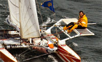 Biondina Nera, il catamarano non abitabile di 6 metri (20 piedi) con il quale Matteo Miceli, atleta dello Yacht Club Favignana, tenterà ad inizio gennaio 2011 di riprendersi il record di traversata atlantica in doppio, strappatogli dai francesi Moreau e Lequin, è arrivato a Dakar a bordo del cargo Linea Messina.