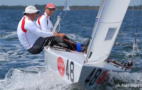 Secondo giorno di regate a Miami per la 81ma edizione della superclassica Bacardi Cup della classe Star, con 113 barche da 26 nazioni, e molte selezioni olimpiche in ballo. La seconda prova, corsa con vento medio-leggero e molto instabile con continui salti che hanno reso difficile la tattica, è stata ricca di colpi di scena e avvicendamenti in testa. Alla fine hanno prevalso i brasiliani Lars Grael e Marcelo Jordao, davanti agli italiani Luca Modena e Sergio Lambertenghi (nella foto, superati proprio all’arrivo), che ora sono settimi in generale. Tre equipaggi italiani nelle prime 5 posizioni della manche: oltre a Modena, c’è il 4° di Alberto Barovier e Nando Colaninno, e il 5° di Francesco Bruni e Gilberto Nobili. Ma è ottimo anche il 7° di Diego Negri e Luigi Viale (che nel corso della regata si erano anche trovati in testa), che porta gli azzurri nella top-ten con il 10° in generale.