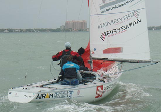 A Miami, con vento intorno ai 15-18 nodi, 28 equipaggi provenienti da 19 nazioni hanno disputato due regate nell‘Yngling Women Worlds Championship. Le azzurre, che mirano alla qualifica della classe olimpica Yngling per nazione, non hanno brillato: l’equipaggio, composto da Chiara Calligaris, Francesca Scognamillo e Giulia Pignolo, ha fatto registrare un 25esimo e un 21esimo nella seconda giornata e si trova ora al 17esimo posto in classifica generale provvisoria, dopo 4 prove disputate. Saldamente in testa ci sono invece le britanniche Sarah Ayton, Sarah Webb e Pippa Wilson (1-3-3-2).