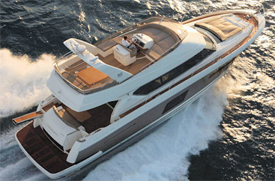 Il nuovo Prestige 350 è il primo modello flybridge ad essere equipaggiato con un motore entrofuoribordo. Lo stile richiama quello del noto Prestige 60, confermando il proprio ruolo di cruiser con il comfort tipico della gamma. Il motore entrofuoribordo da una resa eccezionale; inoltre, questo cruiser consente la navigazione anche in acque poco profonde. Lo stile è aggressivo (linea di coperta rialzata, finestrature snelle, ampio flybridge), gli interni sono costituiti da materiali innovativi, colori a contrasto e le linee sono più affusolate e pulite. A bordo, l’elemento chiave è la comodità, unita all’ergonomia. Interni minimal, ampi spazi e fly arioso. A tutto ciò si aggiunge un’affascinante cabina armatoriale con “vista mare”, una seconda cabina con due posti letto convertibile a matrimoniale e un gavone di prua con doccia separata, cambusa e salone con ampia seduta.