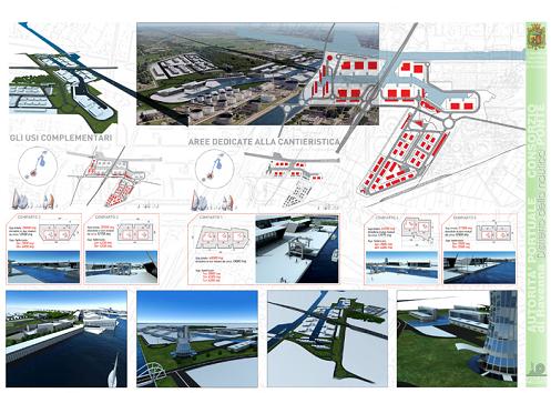 Un progetto che prevede la costruzione di un canale interno, banchine operative, di un comparto per Adriatak-Rossetti, Protan e per l’artigianato di settore; uffici commerciali e direzionali, parcheggi, aziende legate alla nautica e altri servizi, all’interno di un sistema integrato per la nautica da diporto.