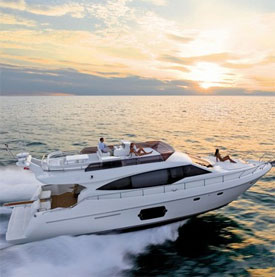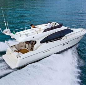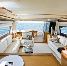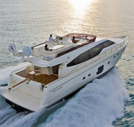 Con il Ferretti 470 il cantiere intende aumentare la quota di mercato, oltre che nel consolidato scenario europeo, anche nei mercati USA, Middle East e Asia Pacific – Cina inclusa. Nato dalla fruttuosa collaborazione tra lAYT Advanced Yacht Technology, la Divisione Engineering di Ferretti e lo Studio Zuccon International Project, Ferretti 470 rappresenta la perfetta unione tra forma e funzione. Infatti, con le sue compatte dimensioni – 14,65 metri di lunghezza per 4,34 di larghezza e lintelligente ottimizzazione degli spazi, realizza la possibilità di vivere il grande lusso italiano e di navigare immersi in un comfort fino ad ora sconosciuto in questa tipologia di imbarcazione. Ferretti 470 presenta particolari caratteristiche che lo rendono unico nel suo genere, tra cui la superficie ampliata delle vetrate, che garantisce una visuale continua da poppa a prua e luce naturale in tutto il living; lo spostamento della cucina a poppa ottimizza luso degli spazi interni ed aumenta la vivibilità: con lapertura della finestra basculante è infatti possibile creare un unico open space che unisce pozzetto, cucina e zona living. Tre cabine due per gli ospiti e cabina armatoriale a prua con grande sala bagno; sun lounge con ampi spazi per godere il mare e il sole sul flying bridge, privo di roll bar che alleggerisce il profilo donandogli unelegante linea sportiva e filante.